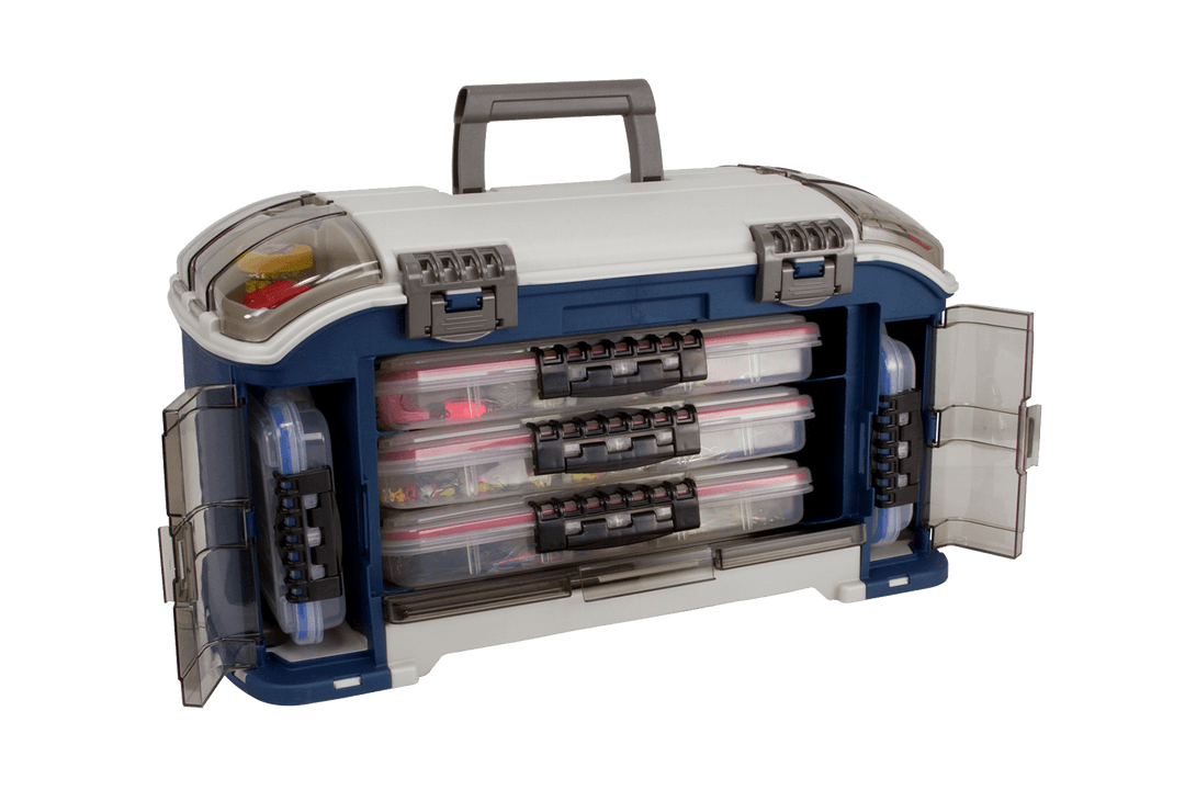 Discover a new angle on tackle storage! Our Elite™ Series Angled Tackle System presents utility boxes in the main compartment at a 15-degree angle for ease of access. In addition, you get an expandable rear pocket to hold fishing essentials, see-through DuraView covers, non-skid rubber feet and more. Includes six waterproof StowAway® boxes: Three 3740 boxes, two 3640 boxes and one 3440 box.