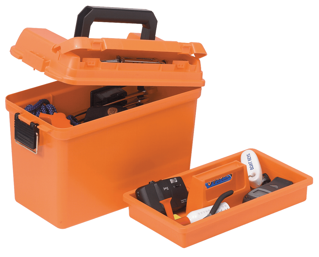 In case of an emergency, every angler and outdoorsman should have access to sufficient emergency supplies. Planoâs line of emergency gear offers a variety of sizes and features to ensure that provisions are available if needed. Each case is molded in an iconic orange color for quick recognition and features a water-resistant O-ring seal to keep supplies clean and dry. This Emergency Supply Box also includes a removable shelf inside.