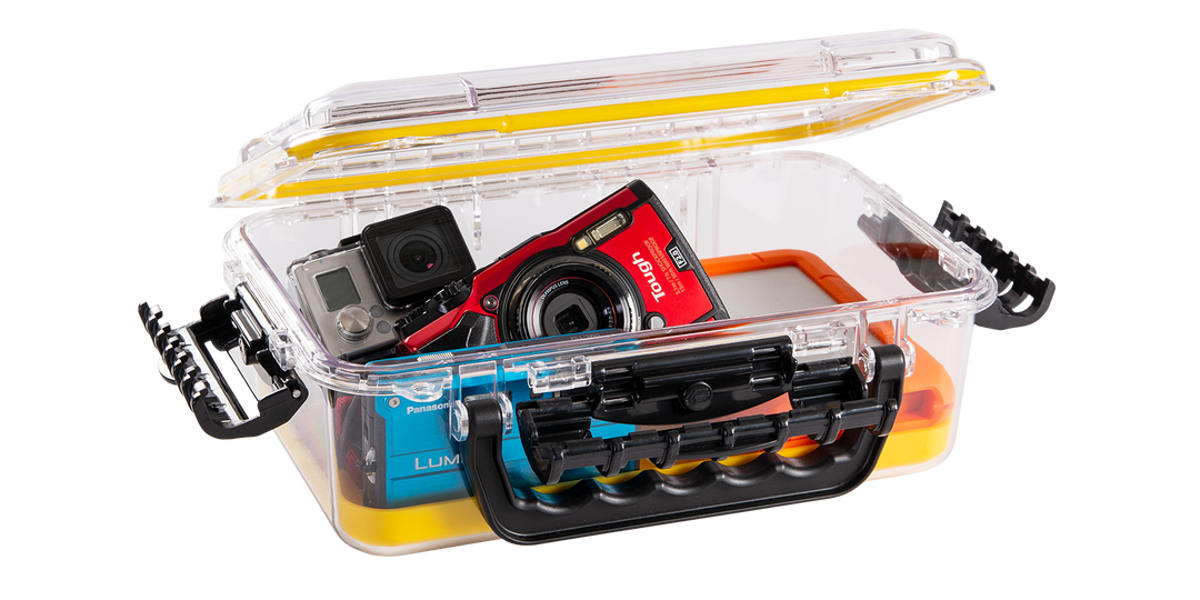 Plano’s Guide Series™ waterproof cases are the best protection on the water. Cam-action latches and a Dri-Loc® O-ring seal provide an airtight, waterproof environment so your valuables can travel with you worry-free. Even if they go overboard, contents stay safe in one meter of water for up to 30 minutes. This 3600 size is a mid-sized box that matches the footprint of other 3600 Plano boxes.
