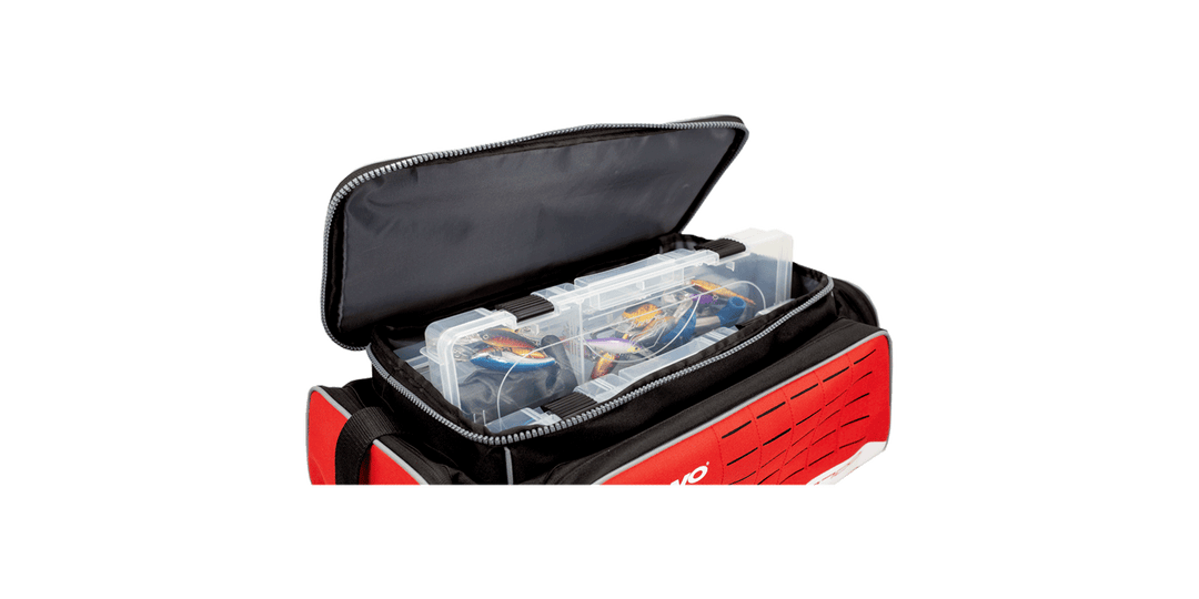 The newest design to join the Weekend Series family, the Deluxe Tackle Case features a molded base that stays put and keeps water out. Supersized with a large interior and multiple exterior pockets, this tackle bag has space for every lure and then some. Includes two 3600 StowAway utility boxes with enough space to fit two more inside.